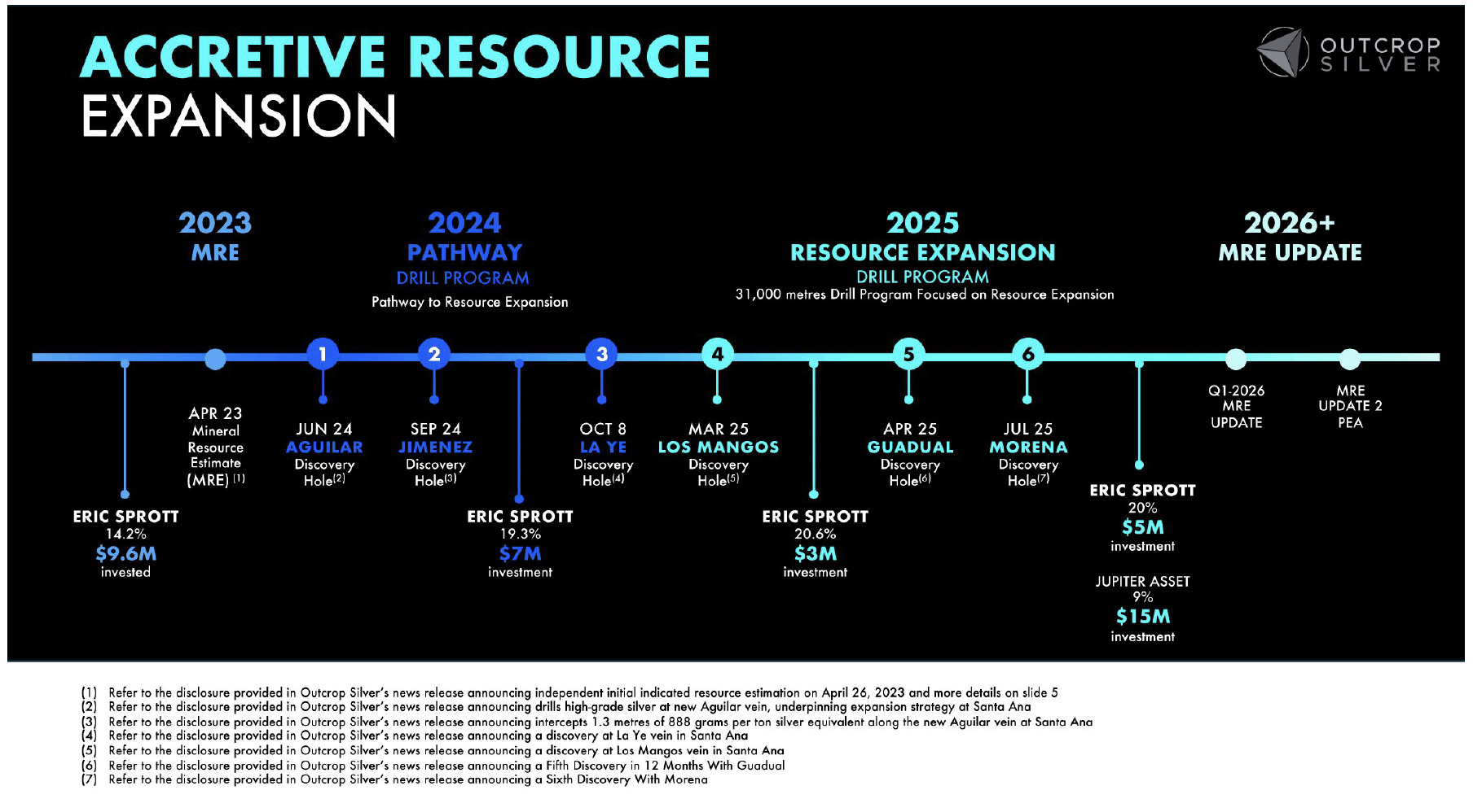 These trends indicate that Outcrop’s shareholder base is becoming increasingly international and institutionally anchored. With this foundation in place, we are preparing to pursue a full-board U.S. exchange listing, such as the NYSE American or Nasdaq. Expanding our U.S. market presence is intended to improve accessibility for existing and prospective shareholders, align our trading venue with where demand is originating, and better reflect the profile of a growing, high-quality primary silver development company.